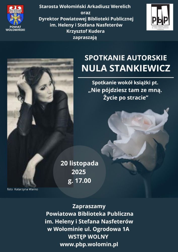 📣 W listopadzie, miesiącu szczególnej pamięci o bliskich, którzy odeszli, zapraszamy na spotkanie autorskie z pisarką, dziennikarką i piosenkarką Nulą Stankiewicz, autorką książki „Nie pójdziesz tam ze mną. Życie po stracie”.