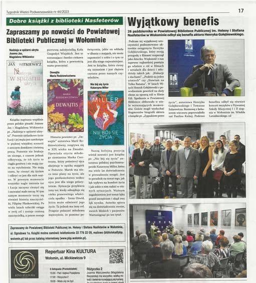 Piszą o nas w prasie w Wieści Podwarszawskie pt. „Wyjątkowy benefis", aktora Henryka Gołębiewskiego.