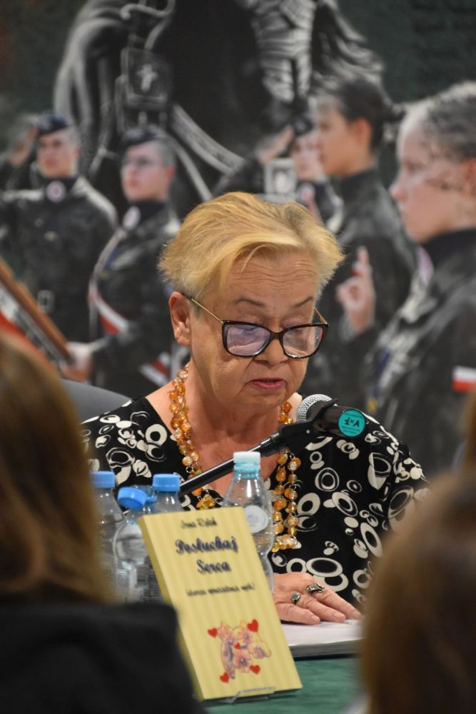 Słuchacze mogli zapoznać się z wierszami, w których opisuje ważne i poruszające tematy, w tym również o Polsce, jej historii i bohaterach. Autorka, podzieliła się swoimi doświadczeniami pisarskimi, między innymi opowiedziała o swoim spotkaniu z księdzem-poetą Janem Twardowskim, któremu poświęciła jeden z przedstawionych wierszy.